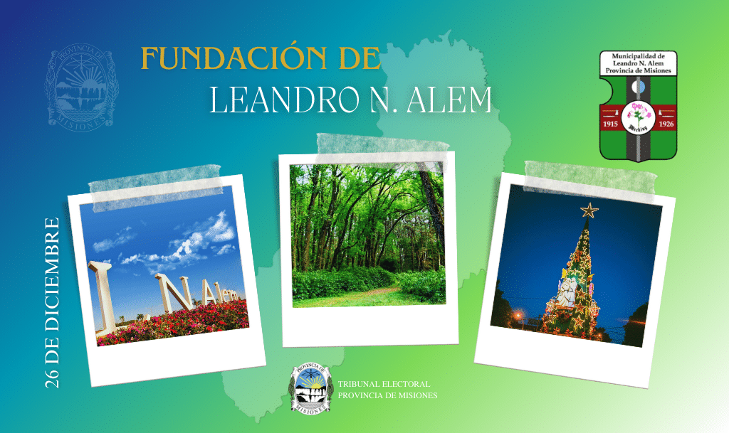 La fundación del puedo se conmemora el 26 de diciembre de 1926, pero que los primeros pobladores registrados datan de 1904; al momento de la fundación el gobierno del Territorio de Misiones (legalmente no era provincia) decretó que se denomine a Leandro N. Alem a la localidad naciente.
