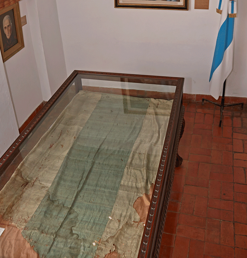“Bandera de Macha” fue encontrada en la Capilla de Macha (Bolivia) y actualmente es parte del patrimonio del Museo Histórico Nacional en Argentina.